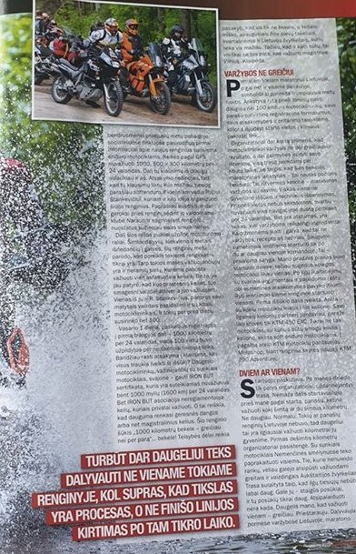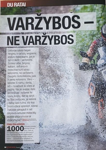Lietuvoje vyksta begalė renginių ir varžybų lengviems enduro motociklams, juk jie tam ir skirti – varžyboms. Sunkieji arba, žargonu kalbant, soft enduro motociklai kurti labiau kelionėms, nei varžyboms. Daugelis motociklininkų juos ir perka kelionėms. Vieni – kelionei iš namų į darbą, kiti – nuvažiuoti iki ežero ar pajūrio. Visi jie svajoja, dalis net leidžiasi į keliones iki tolimų kraštų. Bet ką daryti su šiuo motociklu, jei kelionė į darbą tapo rutina, visi trys žinomi ežerai aplankyti, kibinai Trakuose paragauti ir net dalyvauta keliuose motociklų sezono atidarymuose ar uždarymuose?