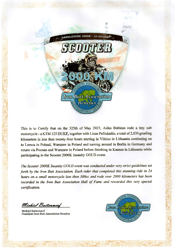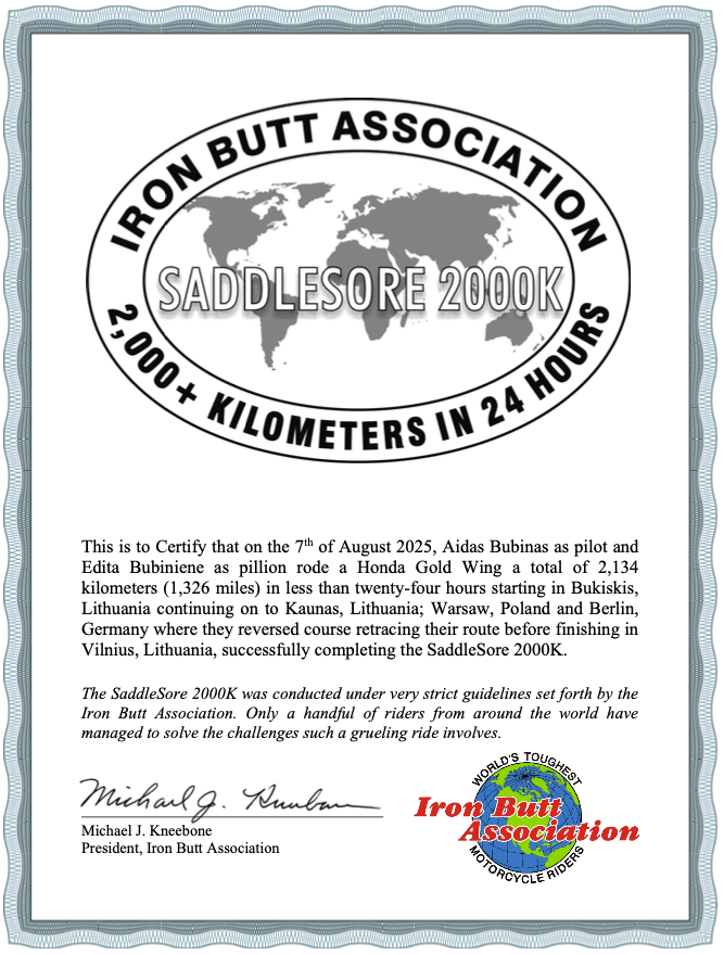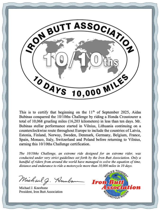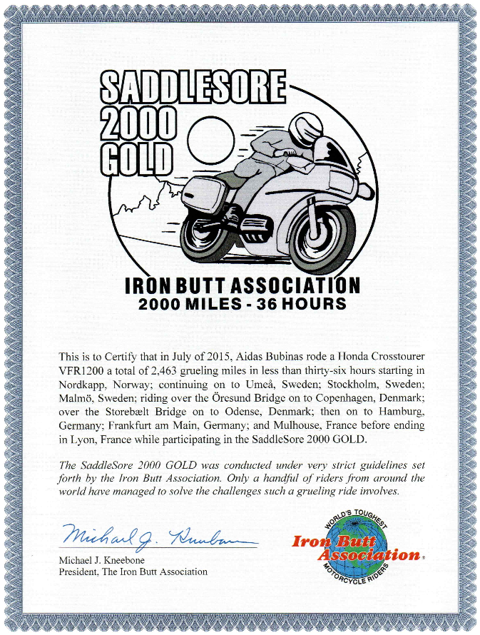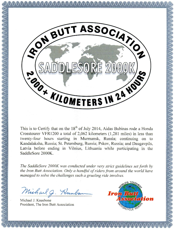 Žemiau pateikiu IBA (Iron Butt Association) sertifikatus, kaip įrodymą, kad turiu šiek tiek patirties ir kalbu ne iš sausos teorijos.